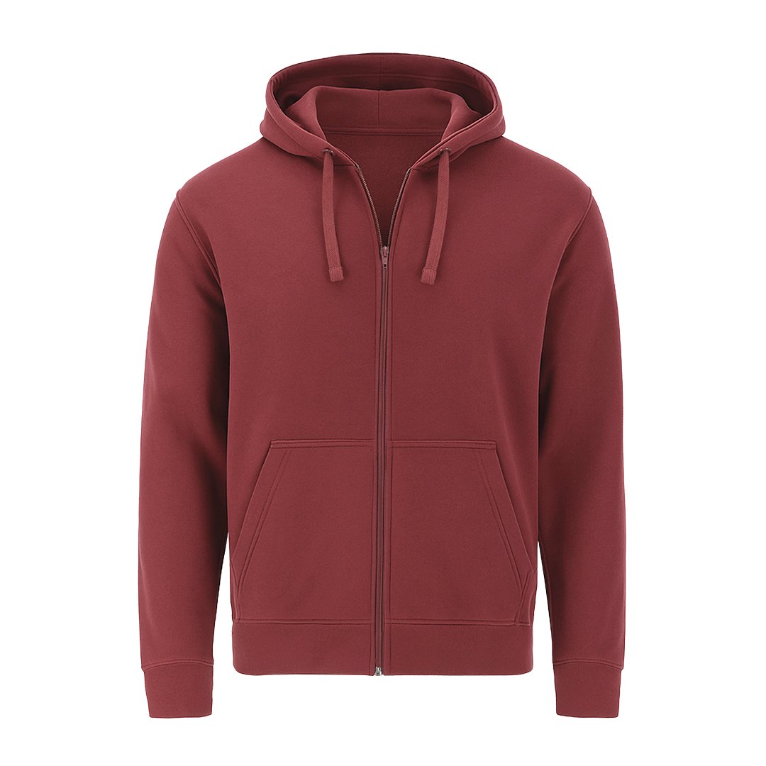 Sudadera unisex con capucha forrada a tono de doble tejido. Confeccionada en algodón y poliester en suave felpa perchada de 280 g/m2. Cierre frontal de cremallera completa a tono. Con cordón ajustable y ojales metálicos a juego. Bolsillo tipo canguro. Cubrecosturas en el cuello. Puños y la cintura en punto canalé 1×1 con elastano para mayor ajuste y confort.