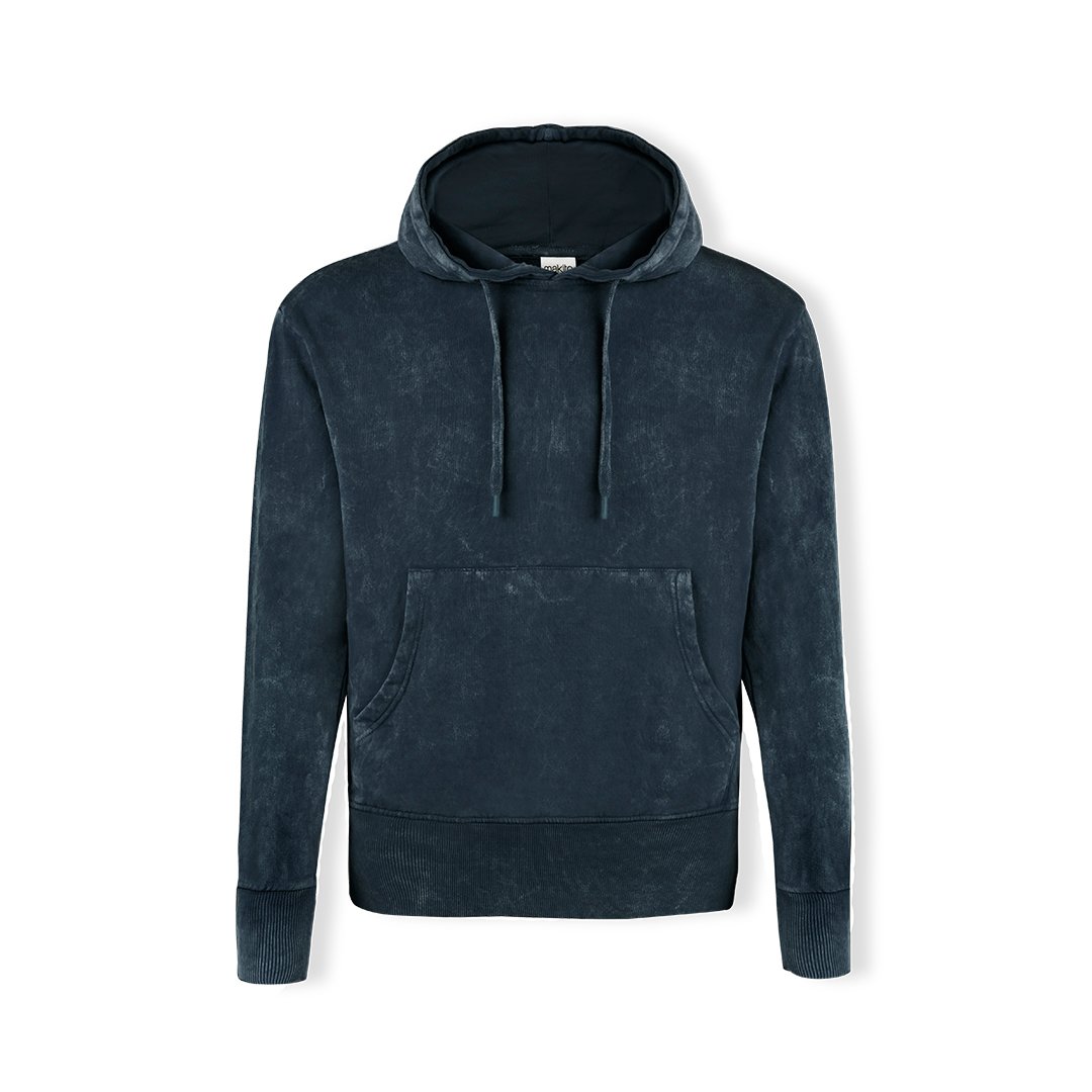Sudadera unisex con capucha y tejido con efecto lavado jeans lo que hace que cada pieza sea única e irrepetible. Bolsillo canguro y elásticos de ancho extra para un ajuste perfecto. Detalle en contraste en elástico de puños y bajo. Confeccionado en 100% algodón peinado con un gramaje de 280g/m2. Tacto suave y corte moderno. Cordones ajustables planos y ojetes de confección, evitando así el uso de metal. Dobles costuras para una mayor durabilidad y resistencia al uso intensivo. Etiqueta fácilmente removible. Disponible en tallas XS, S, M, L, XL y XXL.