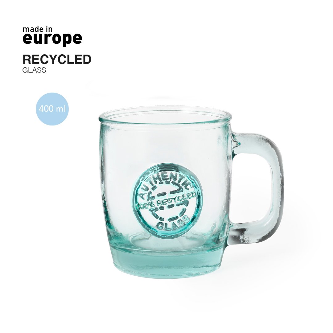 Taza de línea nature de 400 ml de capacidad. De fabricación europea y hecha en vidrio reciclado GRS (Global Recycled Standard / Estándar de Reciclaje Global), que garantiza el origen reciclado del material usado para fabricar el producto.