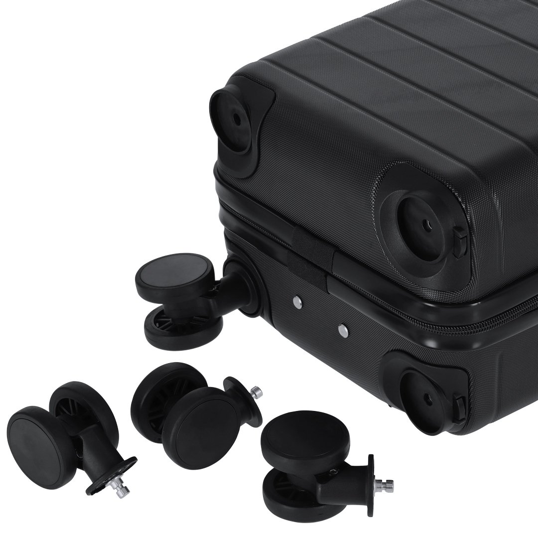 Práctico trolley de 4 ruedas giratorias extraíbles, en rígido ABS. Cierre de cremallera de doble tirador. Interior con compartimentos y diversos. Gracias a su tamaño compacto y a la extracción de las ruedas llevar un trolley como equipaje de manos no será un problema. Incluye bolsa para guardar las ruedas.