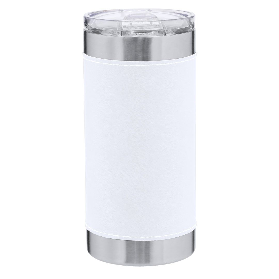 Vaso térmico fabricado en acero inox de doble pared y sofisticada PU. Con 530 ml de capacidad. Incluye elegante fajín de PU, confeccionado con distinguidas puntadas blancas. Incluye tapadera transparente con dosificador en tapa y de fácil apertura, libre de BPA. Es ideal para tener en tu escritorio, mesa o en cualquier superficie donde disfrutar tranquilamente de tu bebida favorita.